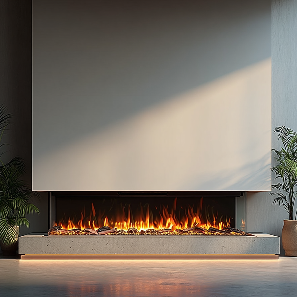 - קמין חשמלי פנורמי שלושה צדדי זכוכית זכוכית קידמית ושתי זכוכיות בצדדים